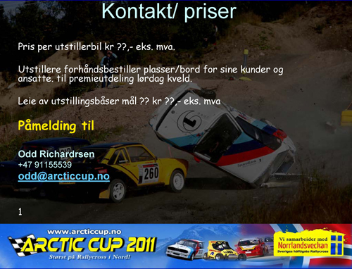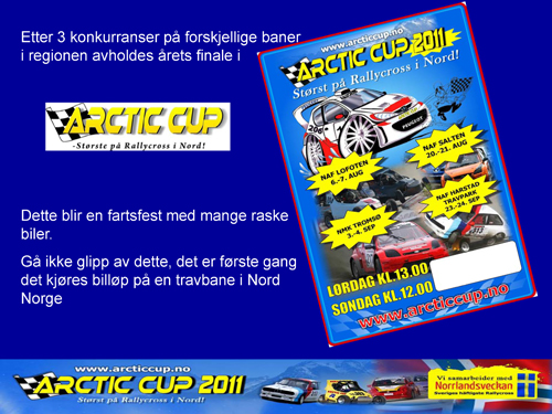 Litt spesielt ble det i år i Arctic Cupen med at Glenn Johansen ble beste fører i junior, og under 2.4 L ble det Stian Andreasen som stakk av med den gjeve pokalen, og over ble det noe overraskende seier til en glad teamsjef i Nor Style Racig fra Harstad Jan Helge Nilsen disse tok storeslem på sine konkurrenter. Teamet tok godt for seg av premiebordet i år, det viser seg at de som satser på dette lykkes til slutt. Det vil komme en del nyhet under Garasjenytt utover høsten.